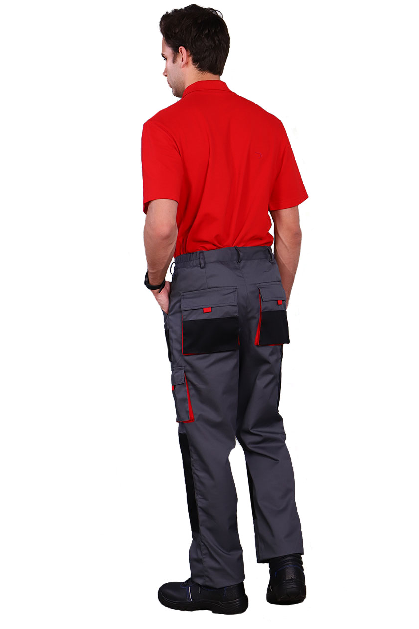 Брюки мужские с застежкой гульфика на тесьму «молния» и притачным поясом. Передние половинки брюк с двумя боковыми накладными объемными карманами с фигурным входом, с наколенниками. Наколенники со входом для амортизационных накладок.